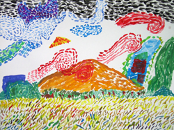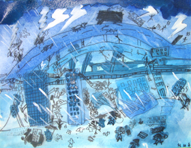 教學目的:通過對風暴的描繪,藉以引發兒童對周遭發生的事物進行觀察及回憶,並剌激其想像能力;同時學習以單色調(冷調)進行創作。 |