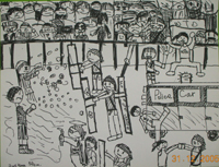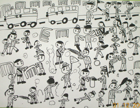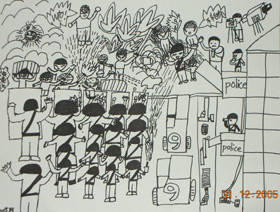 教學目的:通過對世貿示威遊行的描繪,藉以引發兒童對周遭發生的事物進行觀察及回憶,同時訓練兒童對不同示威者的動態進行生動的描繪。 |