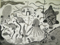 課程內容:傳統水墨畫主要以臨摹形式教授,但對於圖式期內(4-8歲)之兒童,過多的臨摹,對其想像與創造力卻會造成一定程度的壓抑與破壞;故本畫室的創意水墨畫班以打破傳統的教法,課程除教授水墨畫的運筆與渲染等基本技法外,同時以活動啟發式教學,配合不同的教學主題,引發學生觀察、想像、配合水墨畫的獨特技法而發揮其無窮的創造能力。